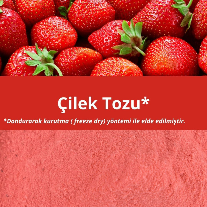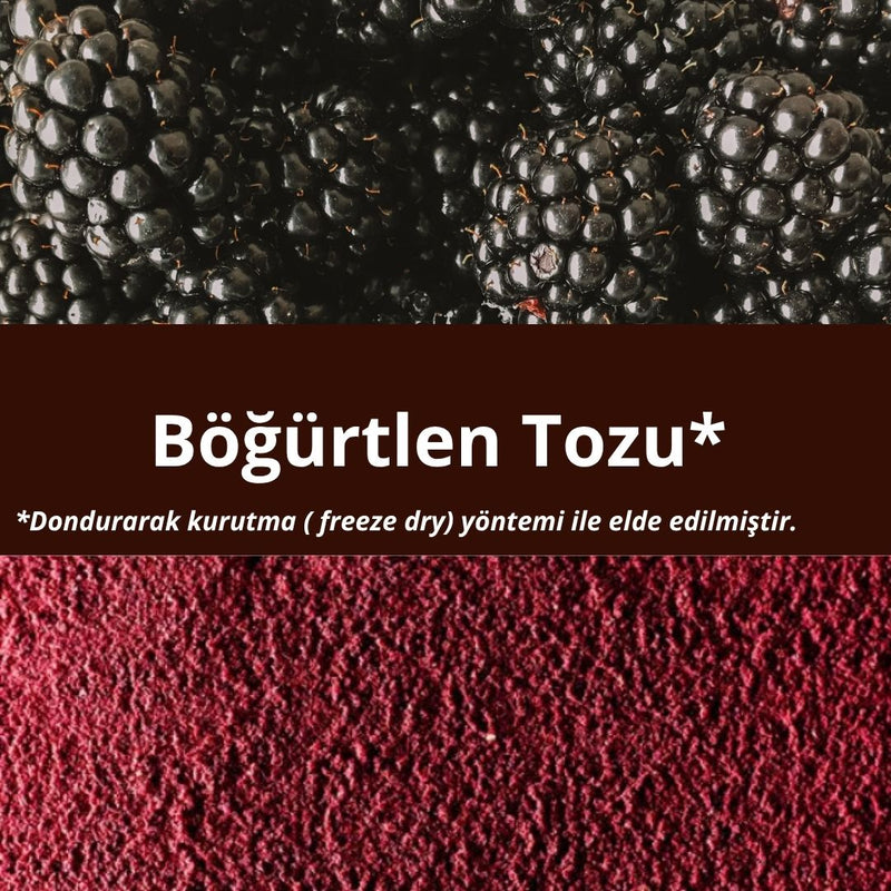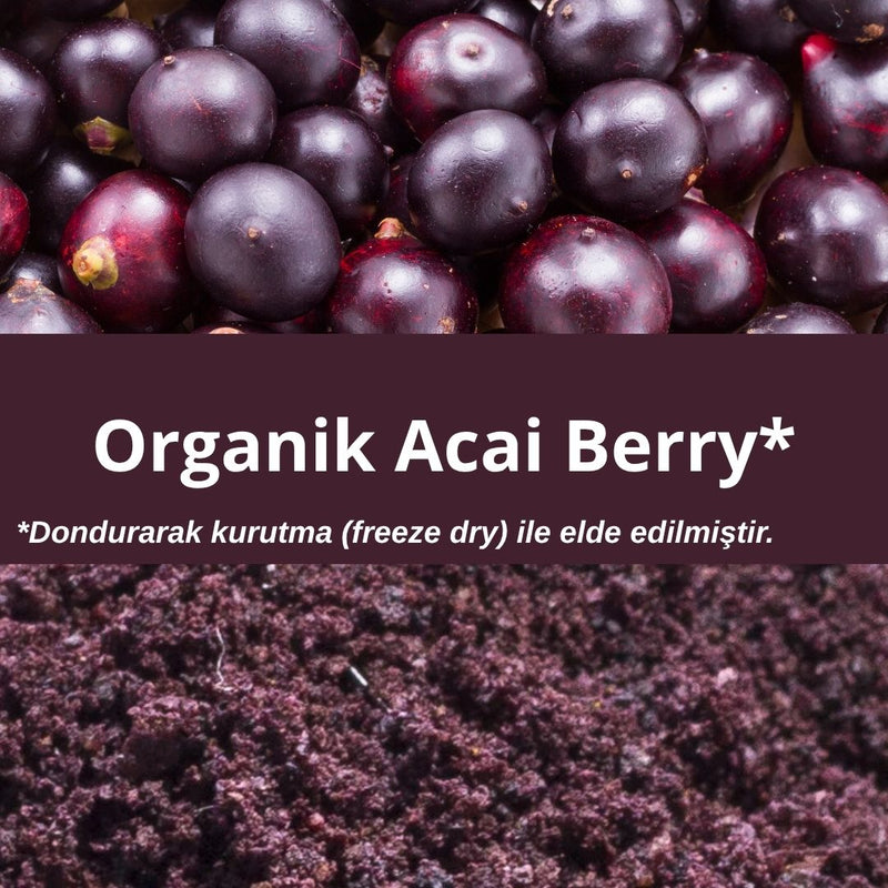 Sizler için birbirinden farklı yüksek antioksidan içeren tamamı freeze dried(soğuk kurutma) üretimi olan kırmızı ve mor meyveleri bir araya getirdik. İçine doğal olarak yüksek C vitamini içeren organik Baobab tozu da eklemeyi doğru bulduk. Çünkü C vitamini de bir başka önemli antioksidan.