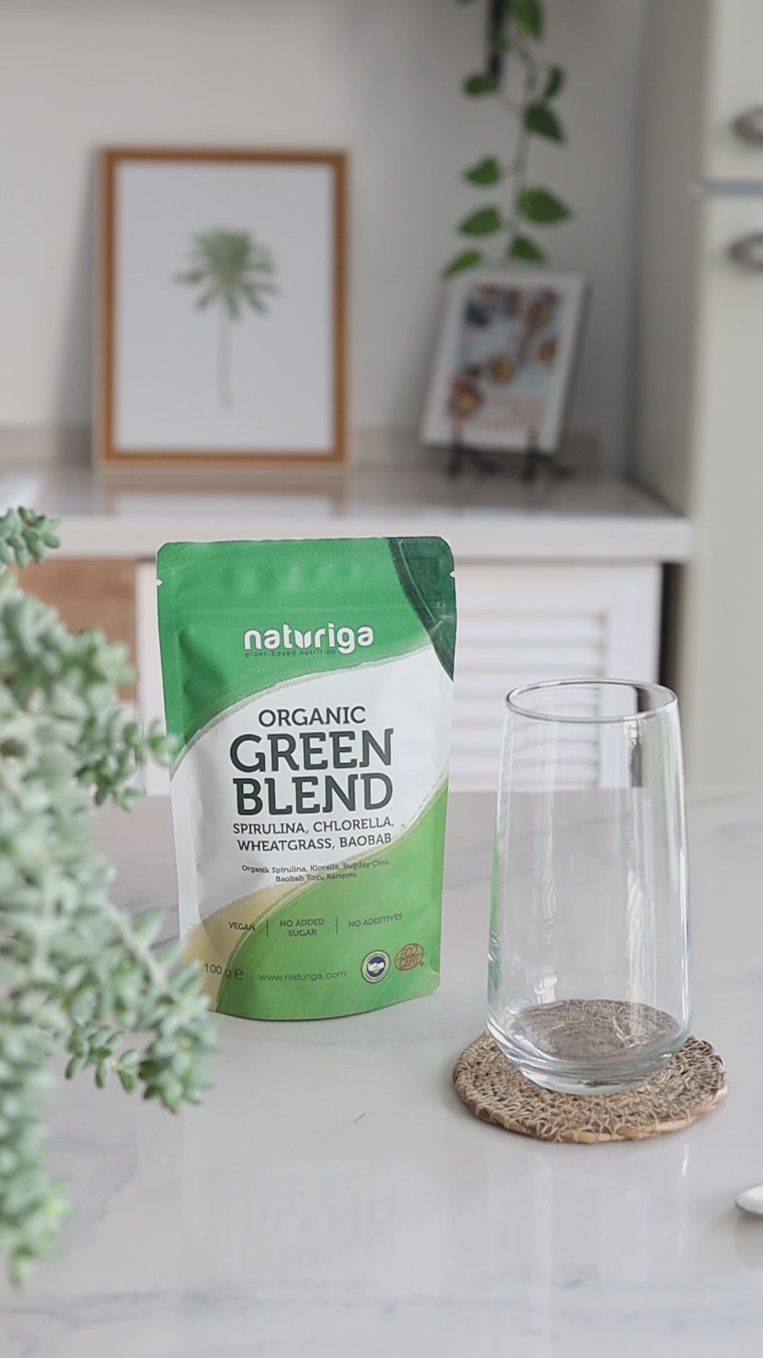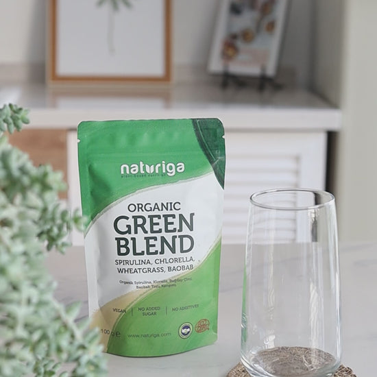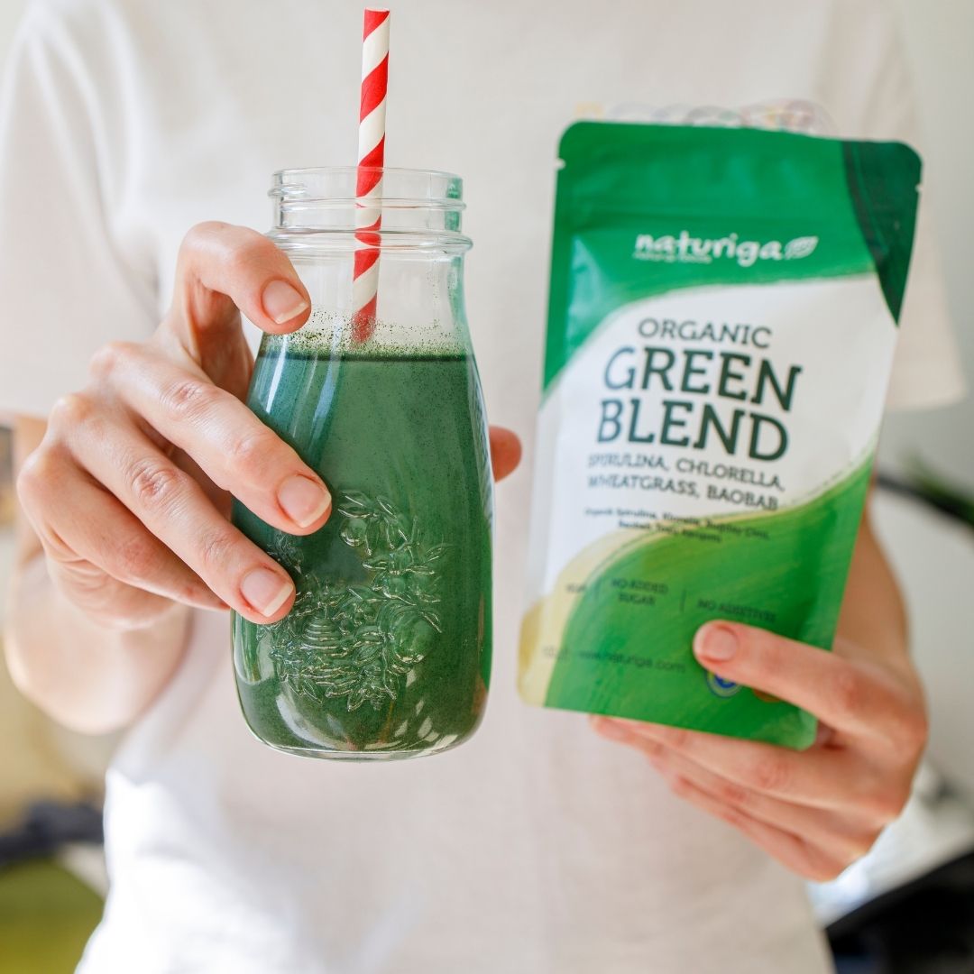 Naturiga'nın en sevilen 3 yeşil ürünü olan Organik Spirulina, Organik Klorella ve Organik Buğday Çimi tozlarını sizler için birleştirirken, doğal olarak C vitamini zengini olan ve limonumsu tadıyla Organik Baobab tozu ile de karışımımızı güçlendirdik.