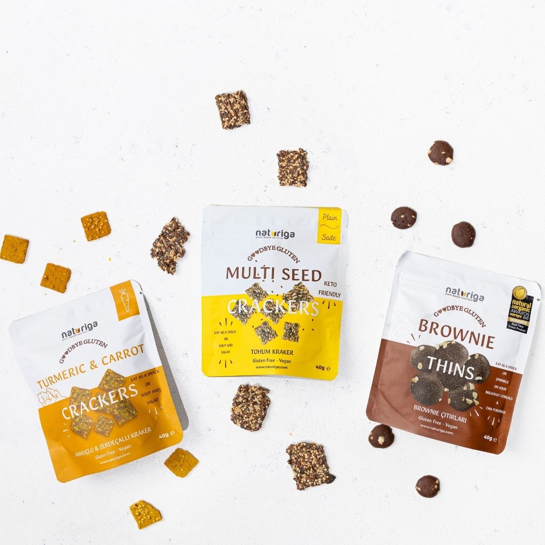 GOODBYE GLUTEN serisi Naturiga'nın diğer tüm ürünleri gibi gluten içermez ve vegan beslenmeye de uygundur.